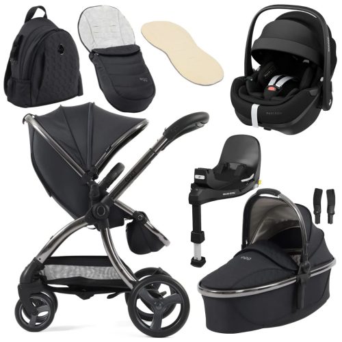 egg3® Stroller in Carbonite – Bundle Deal Inc Pebble Pro 360 & Base, Footmuff, Bag & Adapters