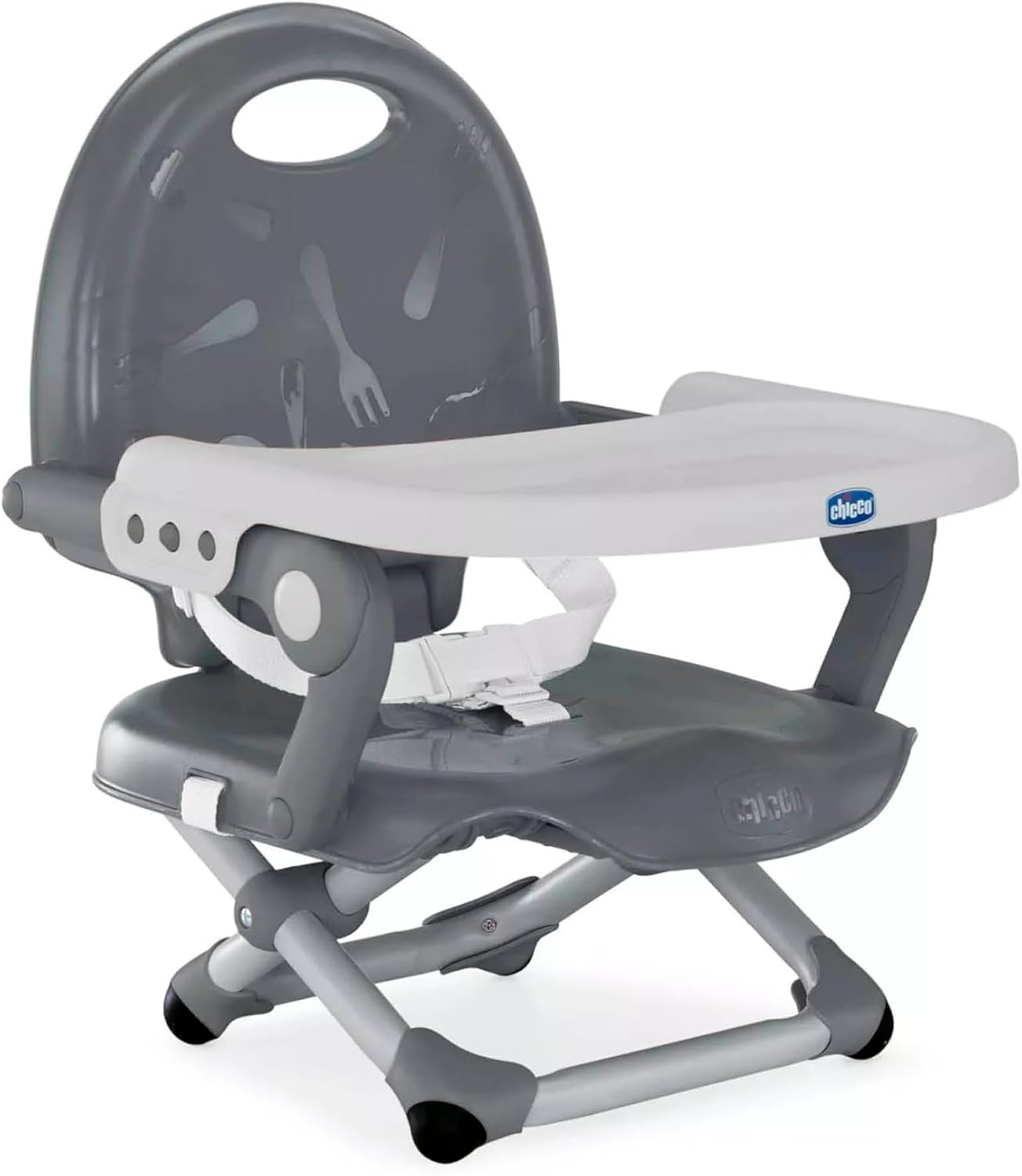 Chicco Pocket Snack Children’s Booster Seat, Dark Grey | 6m-3y (15 kg), Portable, Adjustable High Chair, Compact, Removable Tray