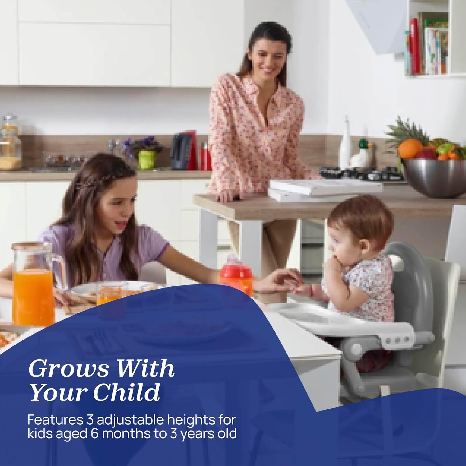 - PRACTICAL AND ADJUSTABLE: The seat can be adjusted to 3 different heights to adapt to the various stages of the child’s growth; it is also equipped with a practical removable and adjustable tray