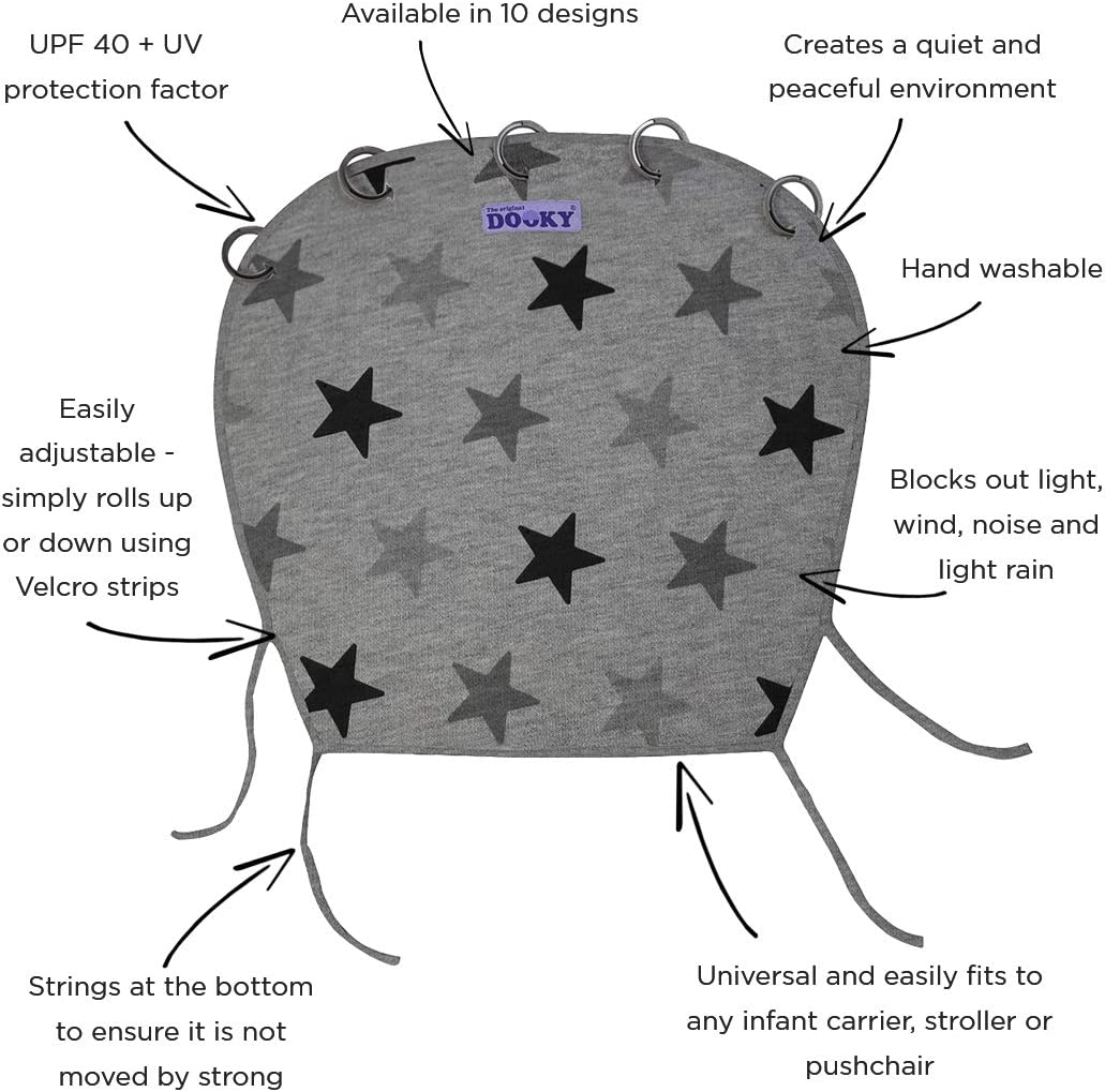 DOOKY Sun Shade Cover- Grey Stars