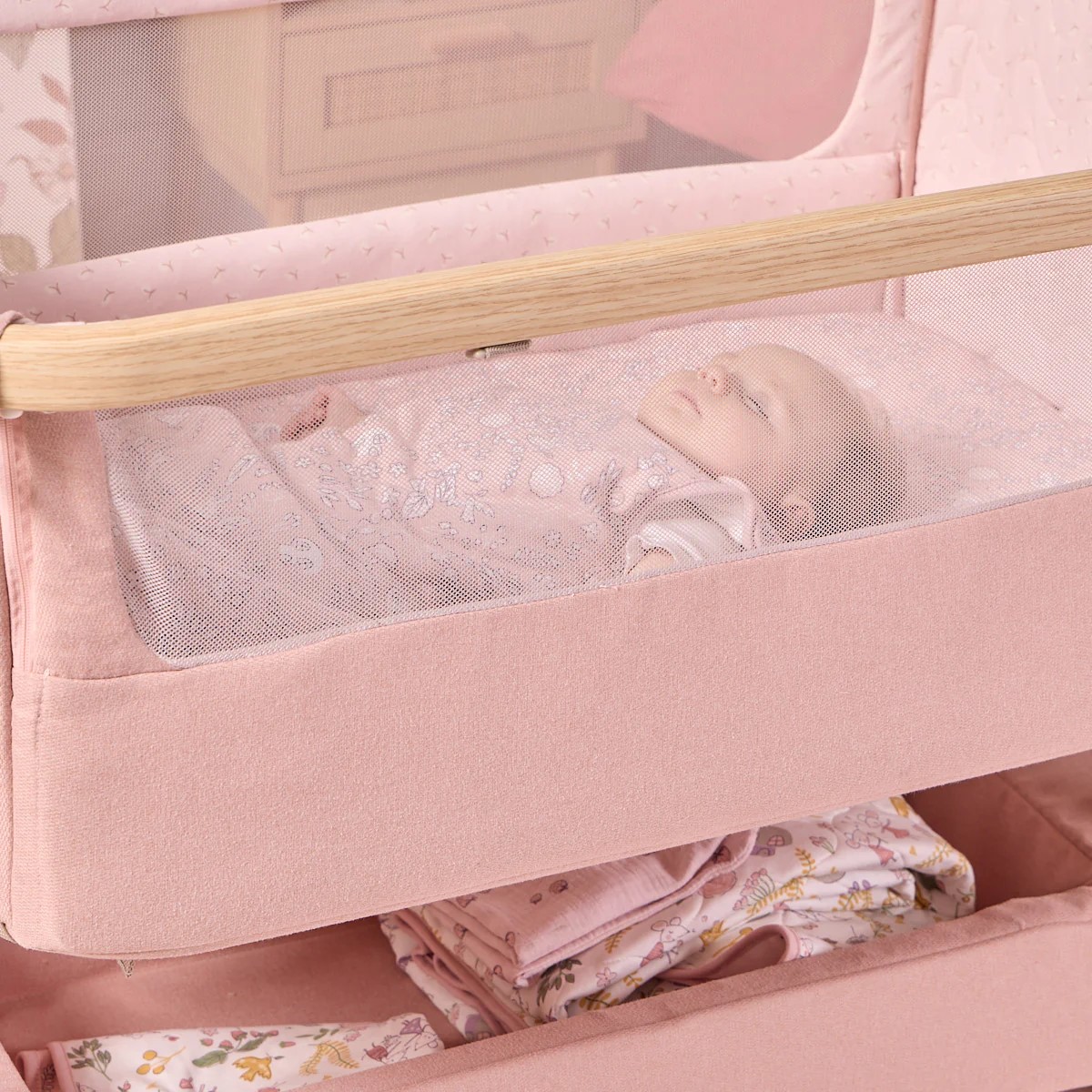 The CoZee® Air 2 Bedside Crib combines beautifully tailored design with thoughtful functionality, creating a calm and comfortable sleep space from day one. Its refined finish, quilted lining and mattress cover bring a sense of luxury, while hidden ventilation holes in the side barrier maintain breathability throughout the night.